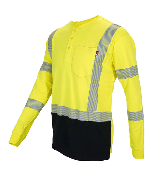 Flamesafe Workwear Henley FR Hi-Vis Yellow Black Bottom Class 3 Shirt