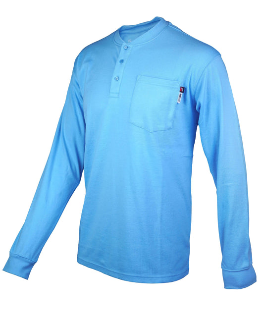 Flamesafe Workwear Henley Sky Blue Cotton FR Shirt